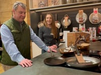 Vernieteter, à la française gekrümmter Stielgriff: einfache und ergonomische Handhabung. Tipp: mit wenig Fett vorheizen.
